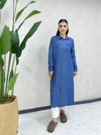Rahat ve Şehirli: Denim Uzun KapModern şıklığın vazgeçilmezi denim dokusuyla tasarlanan bu uzun kap, boydan düğmeli yapısıyla klasik bir duruş sunarken, yan kısmındaki ilave düğme detaylarıyla özgünlüğünü ortaya koyuyor. Sokak stiline rahatlıkla adapte olabilen bu parça, mevsim geçişlerinin yıldızı olmaya aday.Detaylar Düğme kapamalı ön tasarım Yanlarda ekstra düğme detayları Yakalı tasarım ve cep detayıyla fonksiyonel şıklık normal bedeninizden bir beden büyük tercih edebilirsiniz