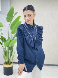 Fırfırlı Taş İşlemeli Poplin Gömlek