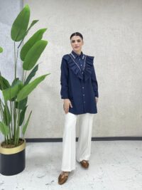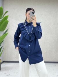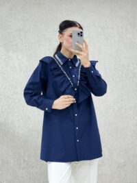 Poplin kumaşın doğal rahatlığıyla öne çıkan bu 82 cm uzunluğundaki gömlek, zarif detaylarıyla sade şıklığı bir araya getiriyor. Ön kısmında yer alan naif taş süslemeler ve fırfır detayları, tasarıma güzel bir dokunuş katarken, günlük stilinize özel bir hava kazandırıyor. Hem konforu hem de zarafeti arayanlar için etkileyici bir seçenek!