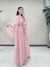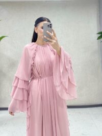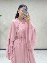 Uçuş Uçuş Şifon Elbise Standart beden (38-46 arası uyumludur)Astar: Tam astarlı Kullanım Alanı: Günlük veya özel gün kombinleri için ideal Hayal gibi hafif, zarafet gibi göz alıcı… Bu şifon elbise, yandan fırfır detayları ve İspanyol kol tasarımıyla romantik bir etki bırakıyor. Belindeki ipli bağlama sayesinde vücuda uyum sağlar ve uçuş uçuş formuyla her adımda zarafetinizi konuşturur. Tam astarı sayesinde hem konforlu hem şık bir deneyim sunar.