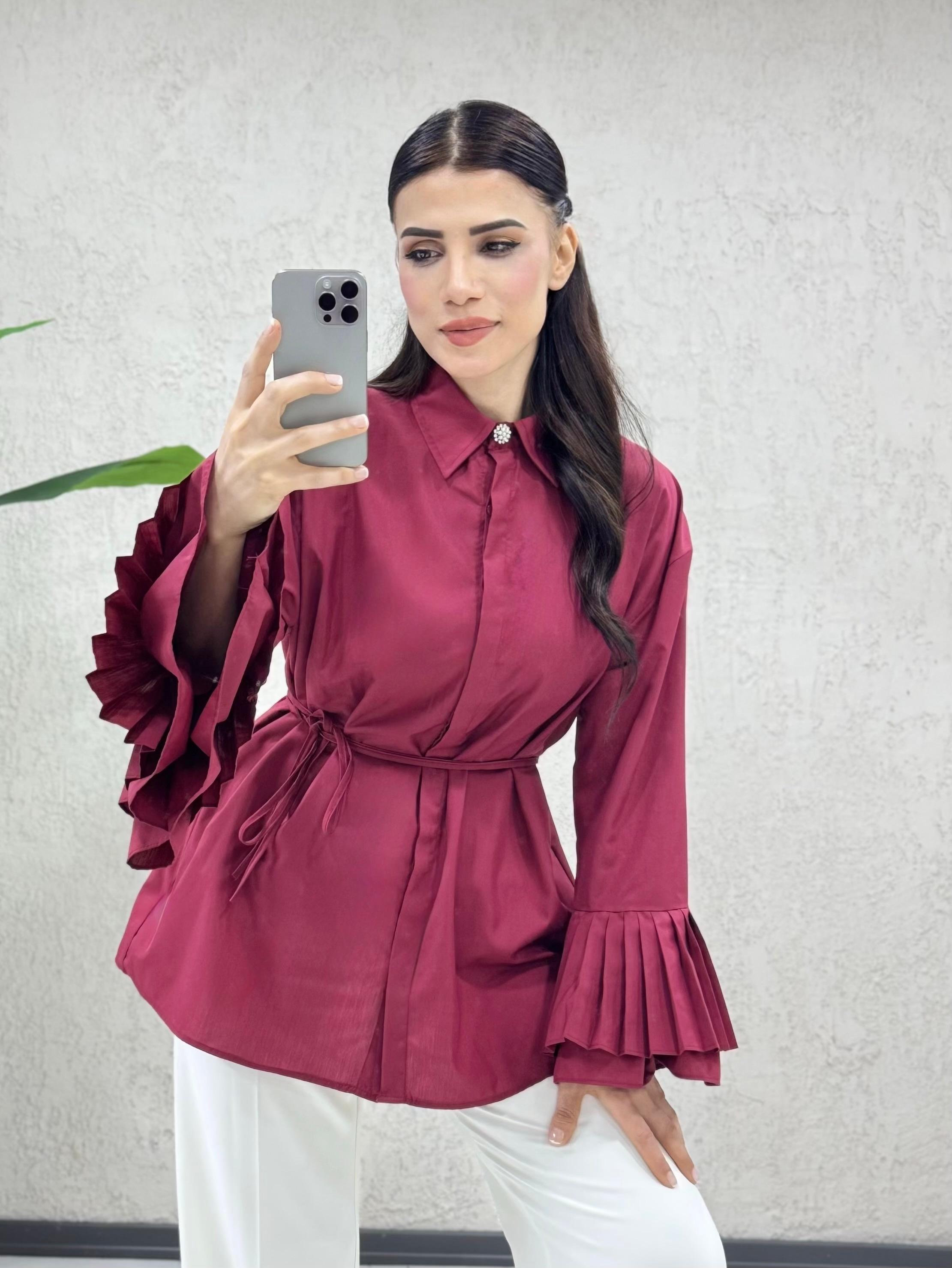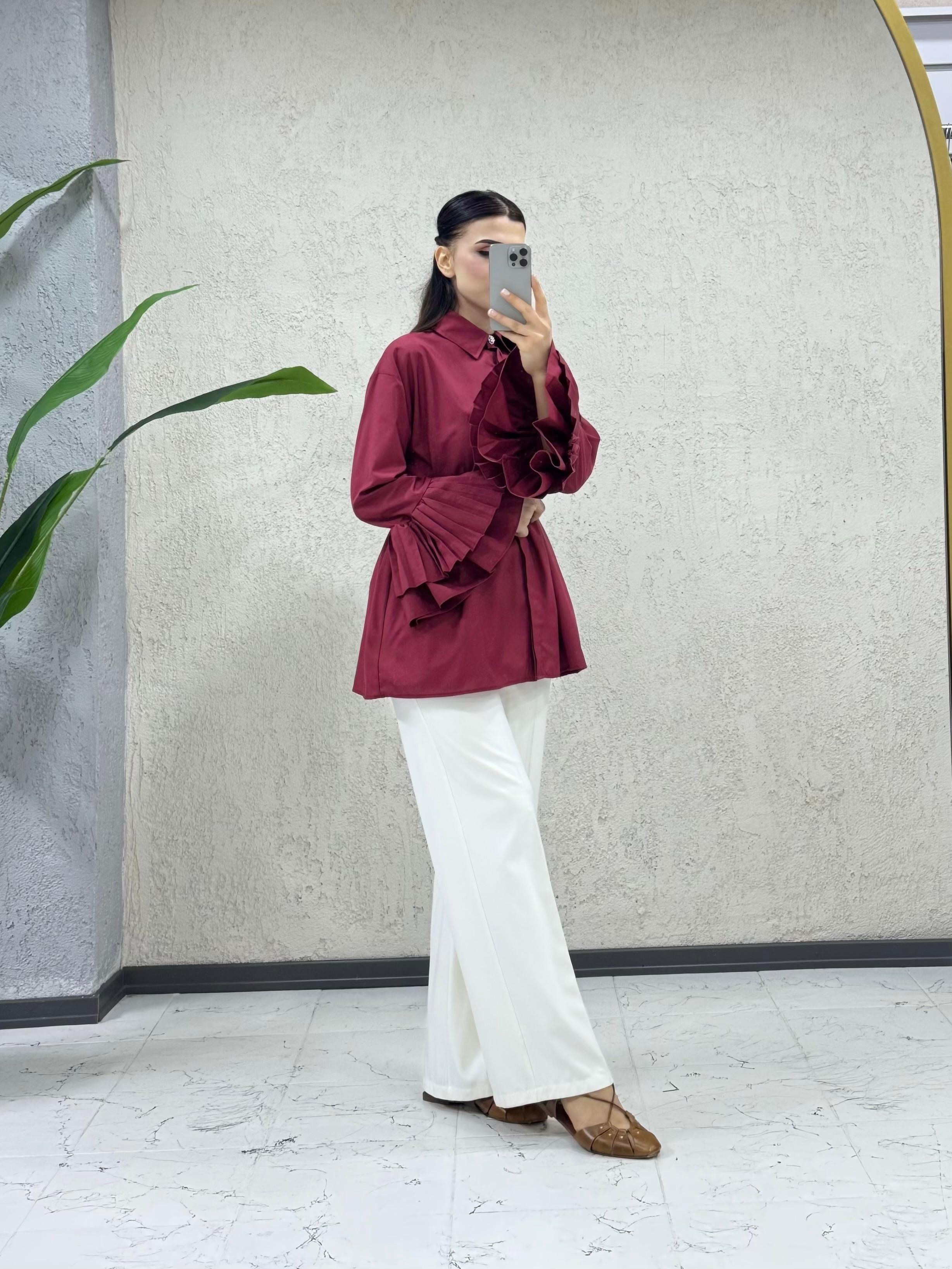 gömlek model boyu 80 cm olan pamuklu gömlek, pliseli İspanyol kol tasarımıyla nostaljik bir hava katıyor. Yakasındaki taş aksesuar düğme ise tasarıma zarif bir ışıltı ve modern bir dokunuş ekliyor. Konforlu kesimiyle günlük stilinize kolayca uyum sağlayan bu gömlek, her anınıza sade ama etkileyici bir şıklık katmak için tasarlandı.