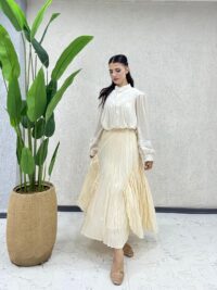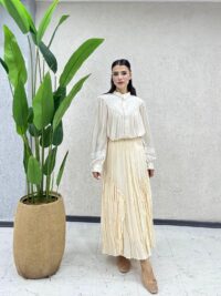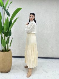 Kumaş Türü: Pamuk karışımlı kraş kumaş – hafif, dökümlü ve nefes alan yapı Kesim: Uzun boy – volanlı etek formu rengiyle Günlük stil, yaz tatili kombinleri, şehir içi rahat şıklık