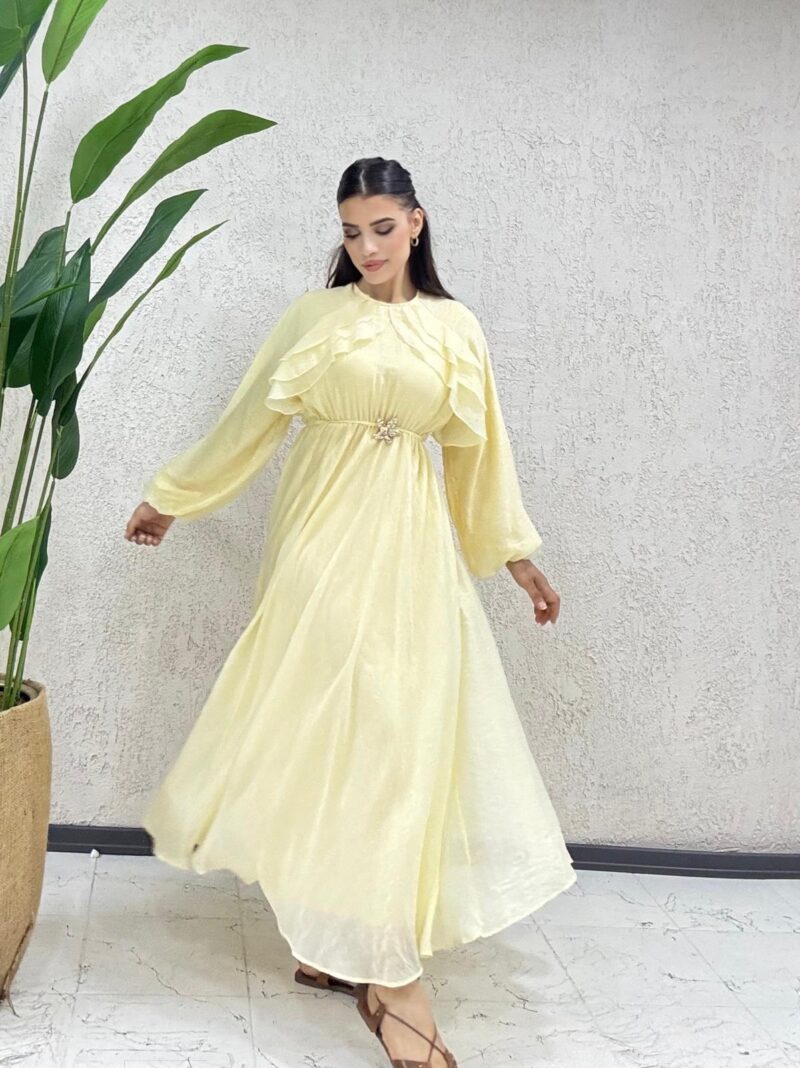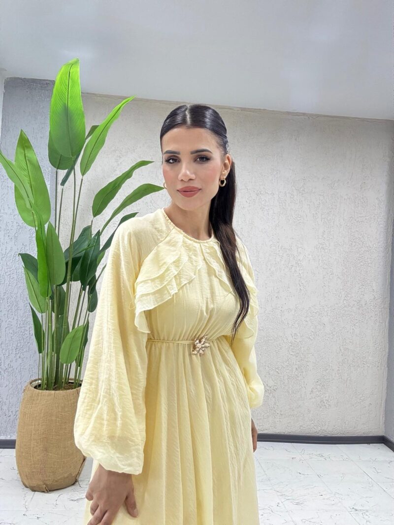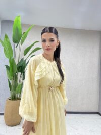 Pamuklu Yazlık Elbise– Hafiflik ve Zarafet Buluşması Beden Seçenekleri1. Beden: 36–38 uyumlu2. Beden: 40–42 uyumlu Kumaş: %100 pamuk – nefes alan hafif yapı Detaylar: Ön kısımda sade fırfır tasarımı, bel kuşağında zarif broş Yaz sıcaklarında hem şık hem konforlu hissettiren bu mavi elbise, pamuklu yapısıyla cildinize nefes aldırır. Ön kısmındaki sade fırfır detaylarıyla minimalist bir zarafet sunarken, beldeki broşlu kuşak ile vücut formunu nazikçe vurgular.